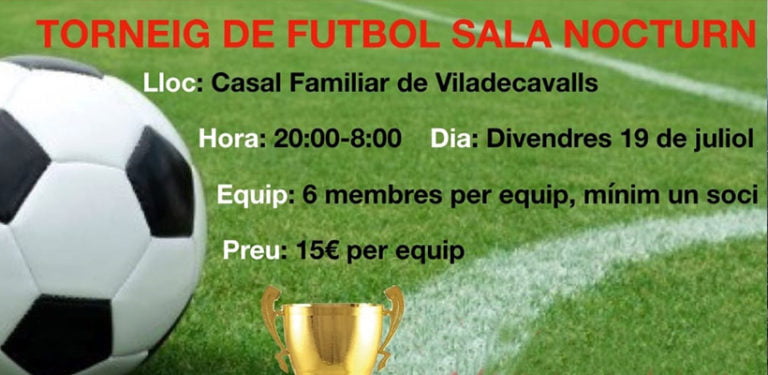 Divendres 19 de juliol de 20.00h a 8h a les instal·lacions del Casal Familiar es farà un torneig de futbol sala nocturn.