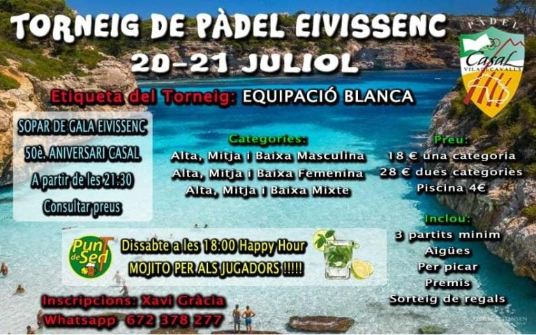 Arriba el tradicional TORNEIG EIVISSENC DE PÀDEL, on com a Wimbledon els jugadors han de vestir de blanc. Pàdel, sol, piscina, mojitos, etc. en definitiva molt bon ambient de Pàdel!!!!!!!