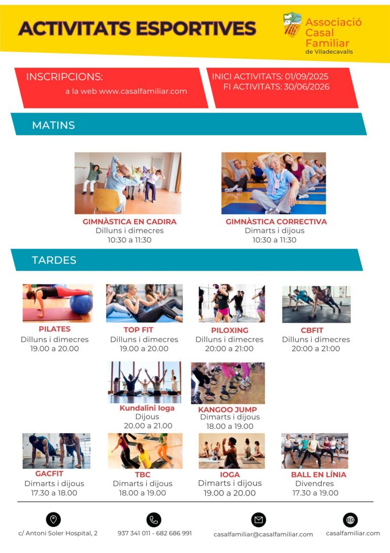 TENIM 2 ACTIVITATS NOVES!!! Benvinguts/des a la nova temporada d’activitats dirigides! Estem emocionats de presentar-vos una àmplia gamma d’activitats per a totes les edats i nivells de forma física. Aquesta temporada, hem preparat una programació diversa i innovadora per ajudar-vos…