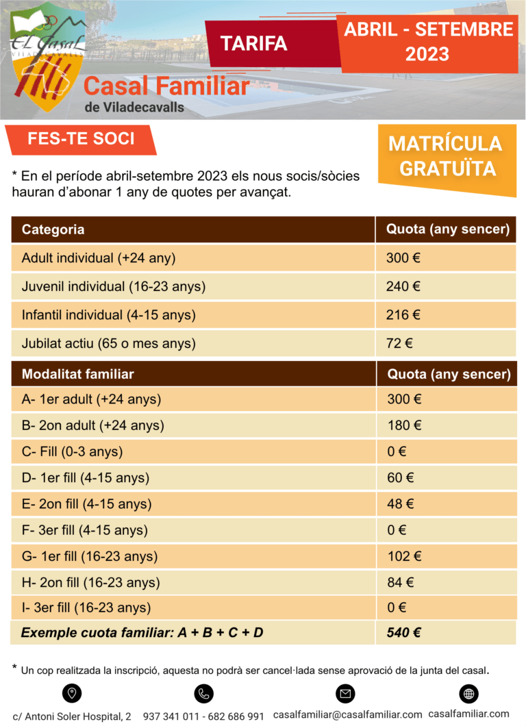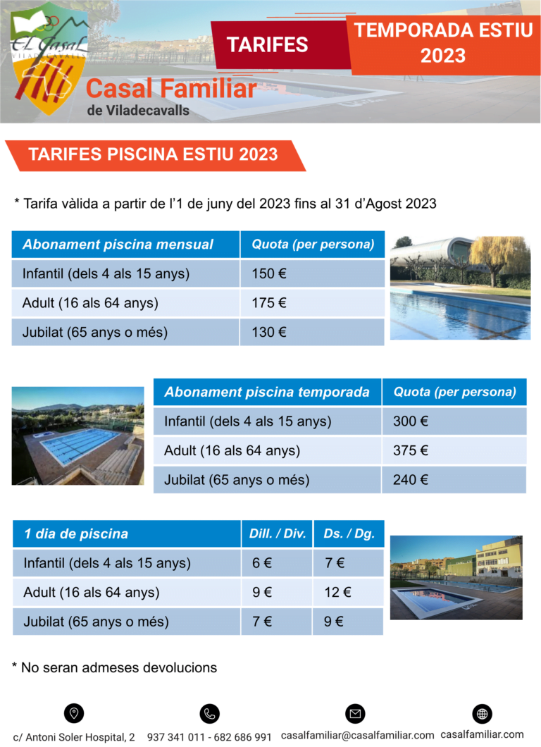 TEMPORADA PISCINA 2024 Socis casal familiar ENTRE SETMANA CAP DE SETMANA 4 a 15 anys 6 € 7€ 16 a 64 anys 9 € 12 € 65 o més 7 € 9 € Preus dia sencer de piscina ENTRE SETMANA…