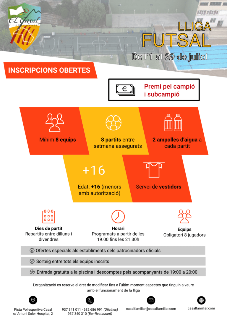Lliga interna de FUTSAL al Casal Familiar durant tot el juliol del 2022.